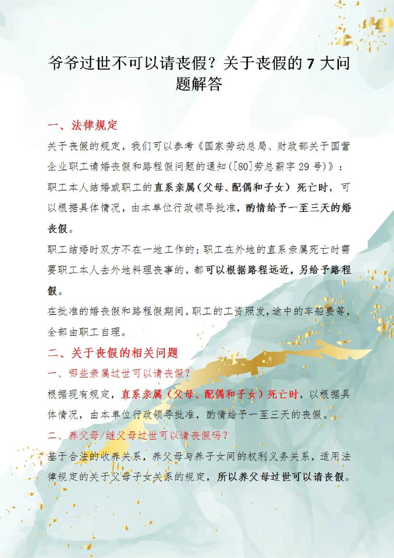劳动法明明白白写着,直系亲属去世能享受法定丧假,甭管你是码农还是风水师,只要签了劳动合同,单位都得批这个假,不过自由职业者可就没这么舒坦了,全凭自己跟客户的约定办事,建议提前在合同里写明白特殊情况处理方式,省得临时抓瞎。