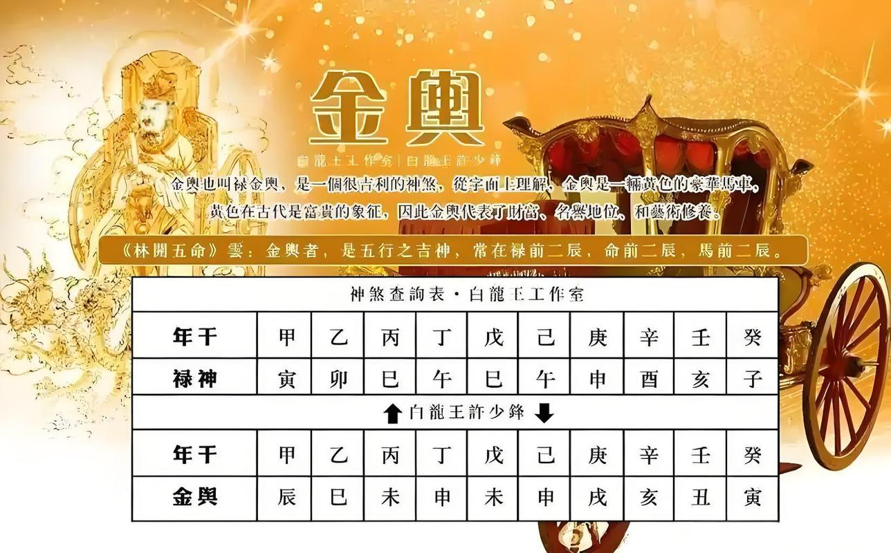 所谓“金舆”,又称“金车”,是古代贵族出行时乘坐的华丽马车象征,在命理学中,若日柱地支逢此星宿,便如同天生自带一辆“豪华座驾”,暗喻生活优渥、福气深厚,尤其对女性而言,它常被解读为婚姻美满、配偶条件优越的信号。
