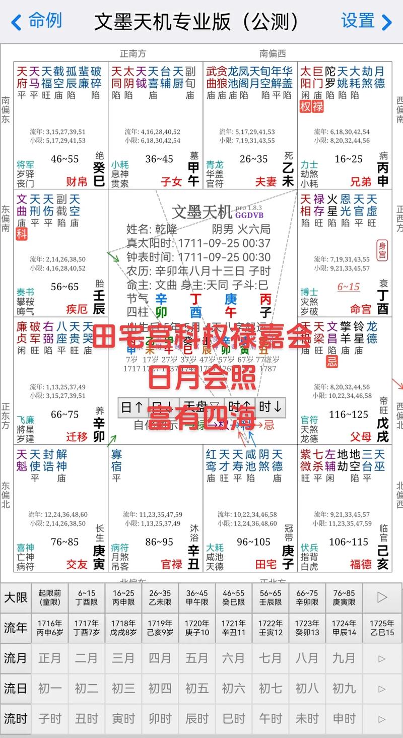 翻开《乾隆八字命理学解析》,最抓人的就是他原局的“金水相生”结构——日主庚金坐子水之上,犹如宝刀浸入清泉,既得滋养又不显锋芒过露,月令亥水为印星,恰似背后有靠山源源不断输送能量,这种配置让权力根基稳如磐石,更妙的是年柱丙火遥合,形成“官印相随”之势,好比朝堂之上既有实权又有名声加持。