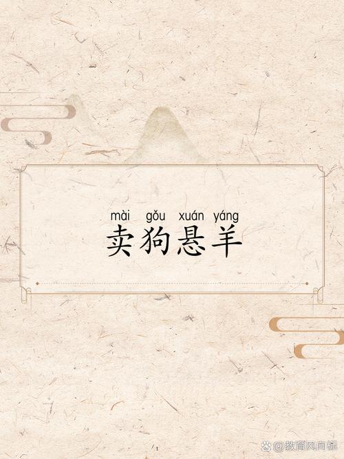 其实大家耳熟能详的是“挂羊头卖狗肉”,比喻用好名义掩盖劣质商品,但反过来说的“卖狗悬羊”——表面在卖狗,实际上挂着羊——反而成了考验观察力的趣味题,这里的关键在于理解“悬”字的双重含义:既指悬挂展示,也暗含替换、伪装的意思。