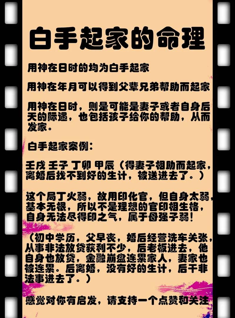 在命运的长河中,有人含着金汤匙出生,而有些人却能凭借自身努力白手起家、改写人生轨迹,究竟怎样的八字命格暗藏这种逆袭密码?今天咱们就来唠唠“白手起家”的特殊组合。