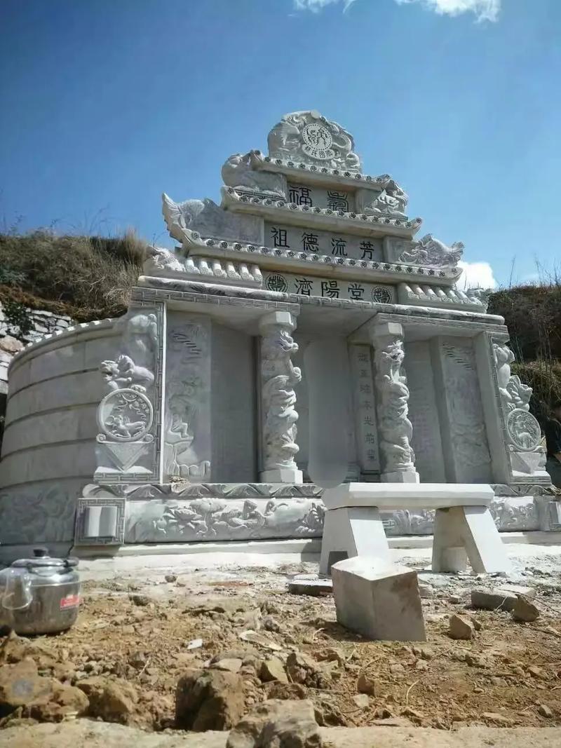 别看都是石头做的,学问可大了!青石属阴适合安魂,汉白玉则能聚阳气,有经验的匠人会根据山向五行来定材质:坐北朝南的穴位多用黑色玄武岩立柱,取其“水生木”的相生之理;若遇土坡地形,则会选用黄色砂岩,暗合“土生金”的富贵格局,就连柱子的高度都有规矩,必须比墓碑矮三寸,这是对天地人的敬畏尺度。
