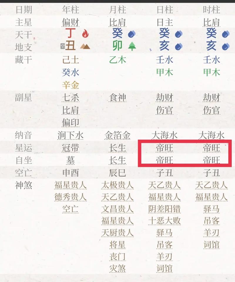 简单来说,“帝旺”如同正午的太阳,光芒最盛却也开始转向衰退,它象征事业、财运或个性上的强势爆发,但同时也可能伴随急躁、固执等特质,若单看一个字尚算有利,可四个帝旺叠加,就像四把烈火同时燃烧,既照亮前路也易灼伤自身。