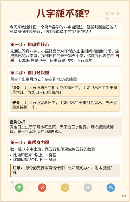 在民间,常听人说“命硬”这个词,好像带着点神秘色彩,啥是命硬呢?简单讲,就是一个人的生辰八字在命理学里呈现出一种比较特殊、相对强硬的态势,那怎么通过测八字来看一个人命硬不硬呢?这可有不少门道。