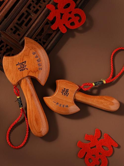 桃木风水斧的作用:桃木在风水中一直被视为具有辟邪驱鬼的功效,而桃木风水斧更是被赋予了强大的镇宅力量,它能够阻挡外界的不良气场和邪祟入侵,为家中营造一个相对安全、祥和的环境,所以很多人会考虑在家中合适的位置摆放桃木风水斧。