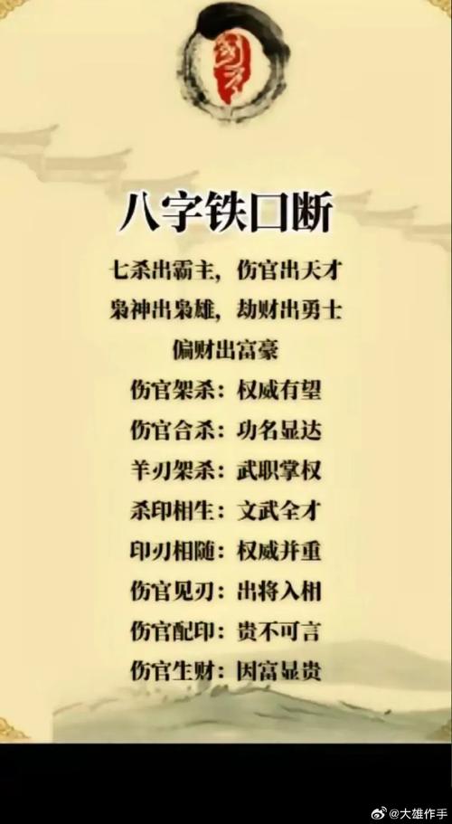 八字,则是根据一个人的出生年、月、日、时来推算命运的一种方法,它认为,每个人出生的时间都蕴含着特定的信息,这些信息决定了人的性格、事业、婚姻等方面,通过分析八字,可以预测一个人的运势走向,甚至给出一些改运的建议。