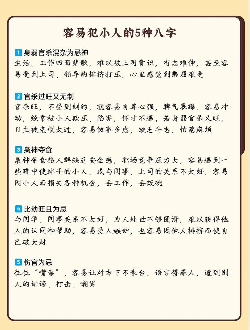 生活中,我们常听人说“最近犯小人”,明明没招惹谁,却总被背后议论、使绊子,甚至好事被搅黄,这到底是巧合,还是和我们的生辰八字有关?其实在传统命理中,“犯小人”并非玄学诅咒,而是某些命格或运势下容易吸引是非的规律,今天就用大白话聊聊,哪些八字特征容易招小人,又该如何化解。