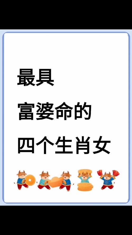 在中国传统文化里,生肖属相一直是个挺有意思的话题,它不仅代表着一个人的出生年份,还常常被人们用来推测性格、运势啥的,今天咱们就来聊聊一个特别接地气的话题——典型富婆命的4个生肖女,娶到她们是不是就等于赚到了呢?这可真让人好奇,毕竟谁不想找个能旺夫益子,还能一起过上好日子的伴侣呢?