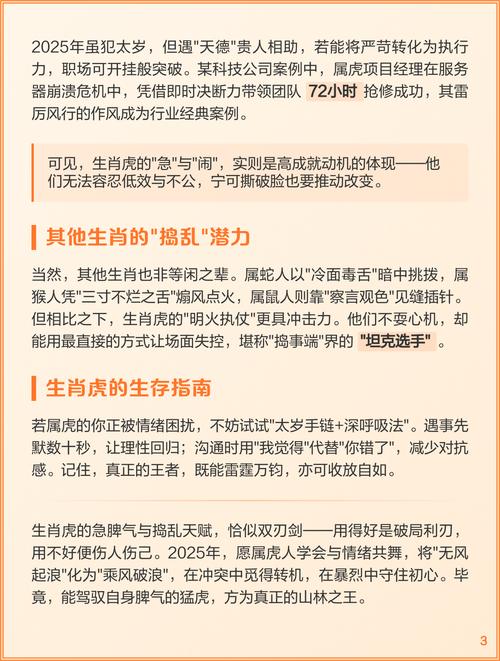 属虎的人往往充满自信,他们对自己的能力有着清晰的认知,面对挑战,从不退缩,总是以无畏的姿态迎难而上,比如在工作中,若有重要项目需要推进,属虎的人会毫不犹豫地站出来,凭借自己的才华和勇气,带领团队披荆斩棘,他们深知自己的实力,所以不会故作谦虚,而是用实际行动证明自己的价值。