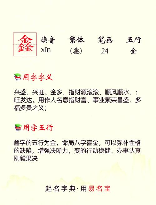 我们得明白“鑫”这个字本身的含义,它由三个“金”字组成,形象地表达了财富聚集的概念,在现代汉语中,“鑫”常被用作人名或公司名,寓意着财源广进、生意兴隆。