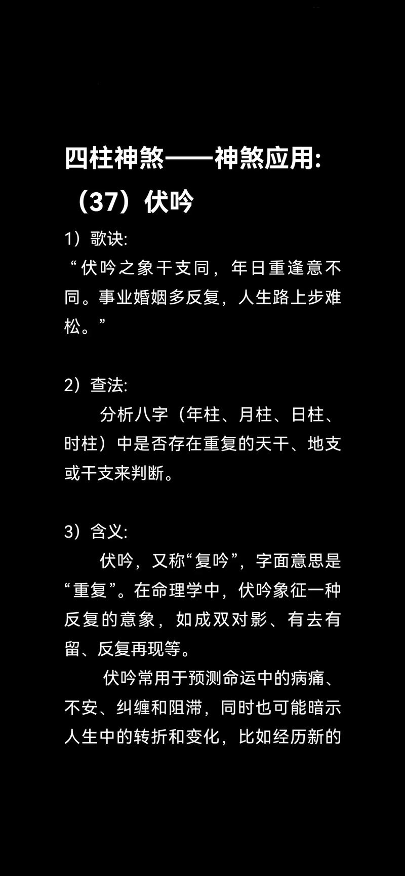 - 专业领域突出:伏吟的能量可以集中在某一特定领域,使得命主在该领域内更容易获得成功和认可。