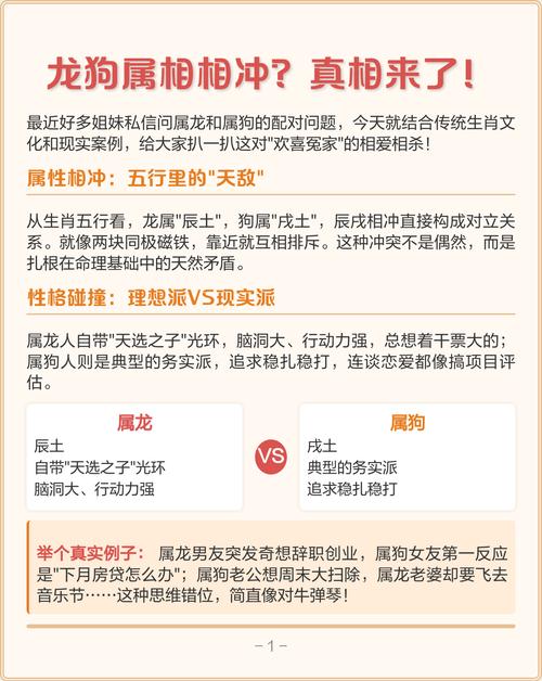 我们需要了解什么是“龙狗冲”。“龙狗冲”是指属龙的人和属狗的人在一起时可能会产生的冲突或矛盾,这种冲突可能源于性格、价值观等方面的差异,导致双方难以和谐相处,究竟是属龙的人克属狗的人,还是属狗的人克属龙的人呢?这个问题并没有一个确定的答案,因为每个人的情况都是不同的。